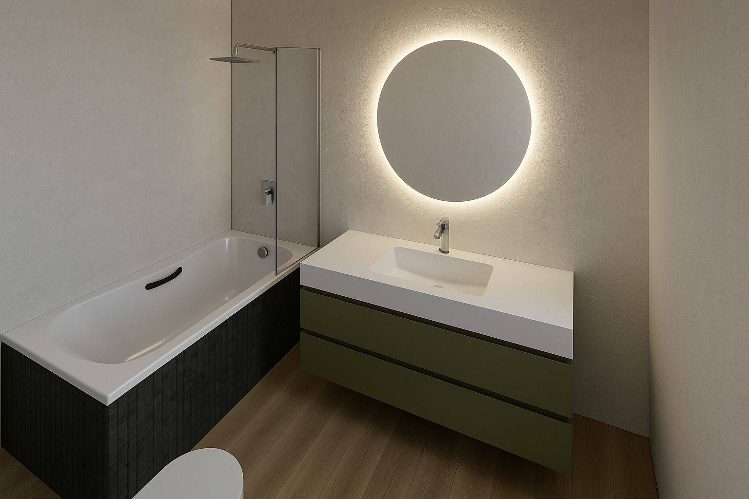 I bagni sono moderni e funzionali con sanitari sospesi e box doccia.